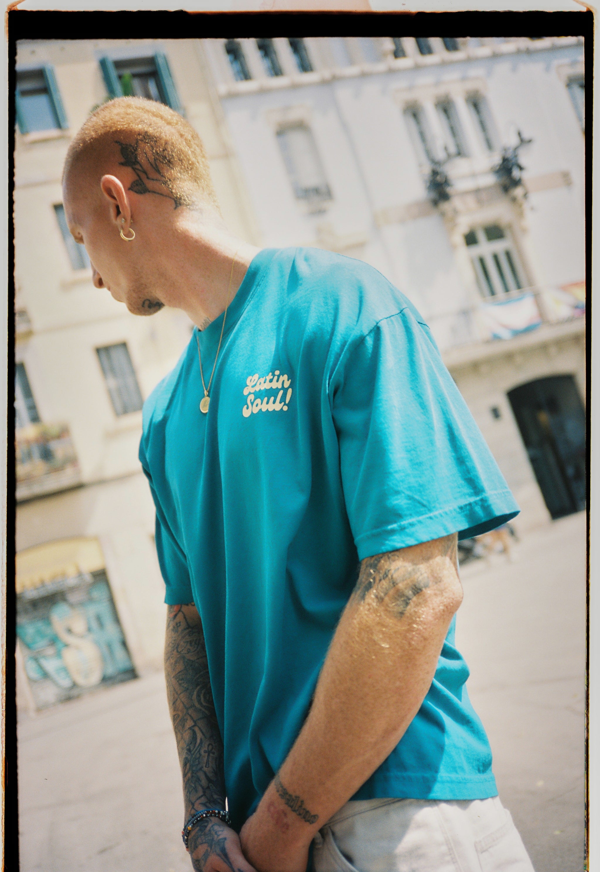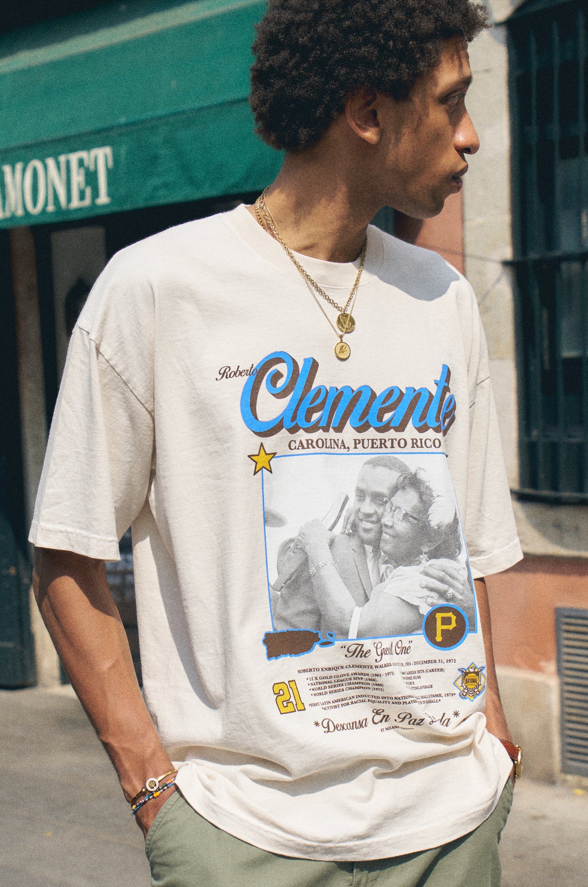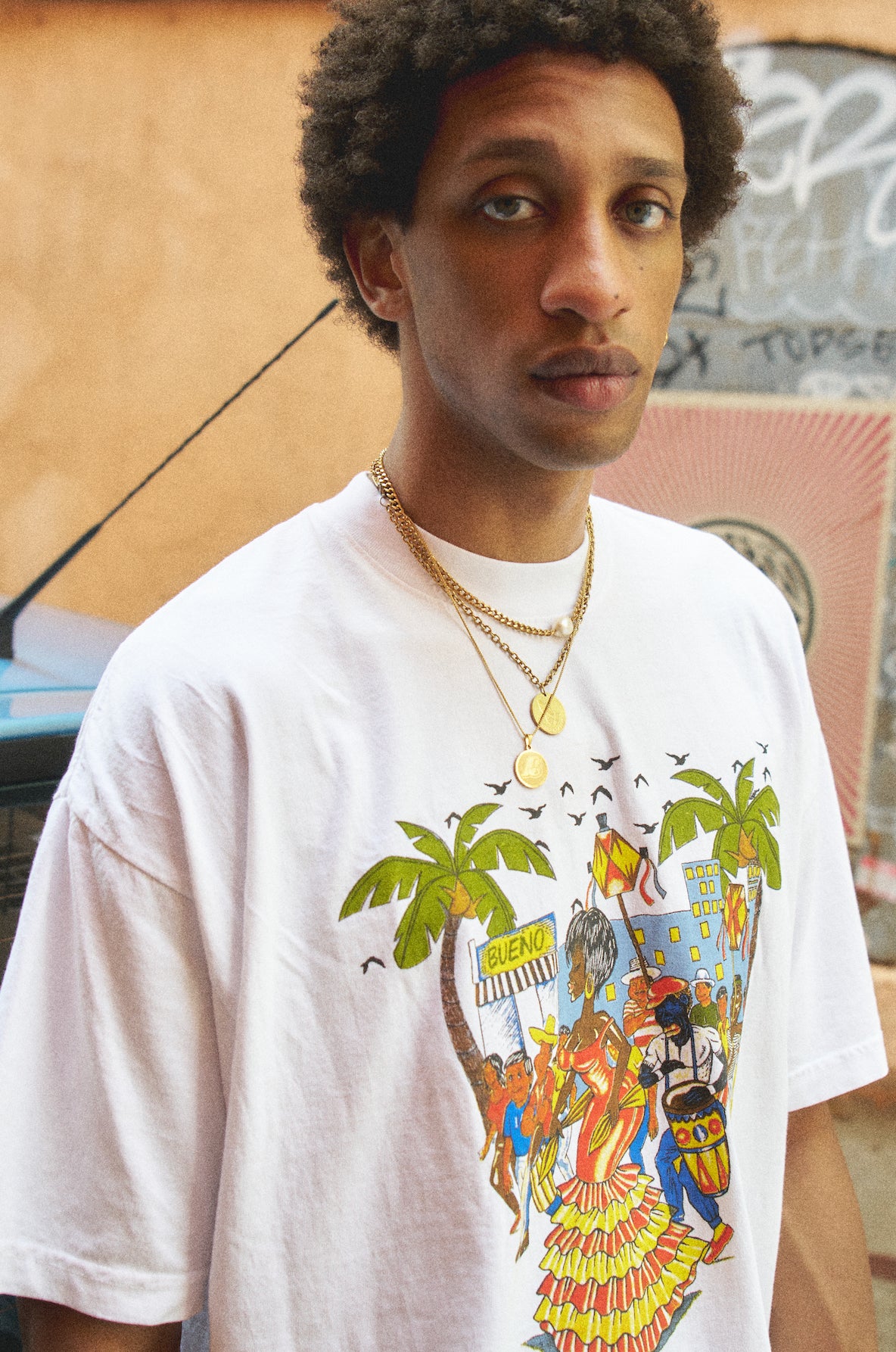 The Bueno Summer '23 lookbook highlights special graphic offerings paying homage to Latin icons Roberto Clemente, Salvador Dali, Jean-Michael Basquiat, & Celia Cruz. This season's campaign takes place in Barcelona, Spain where we feel the city's beautiful architecture & people capture the essence of Bueno.