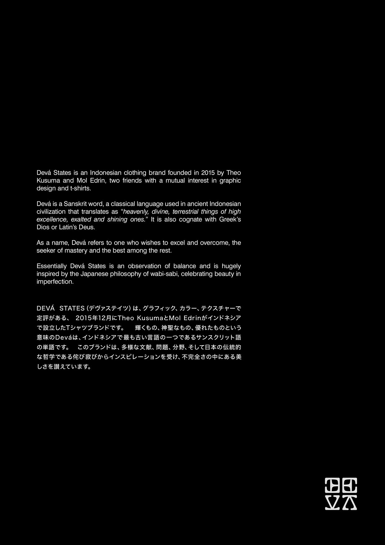 For this AW'24 Devá States themes its collection, "Chrysalis" meaning 'the transitional state'. Representing Devá's constant development of quality craftsmanship and graphic artistry as a new age street label from Indonesia. From transcended graphic tees, ethereal knits, staple outerwear, and more.. Devá seamlessly blends contemporary style with subcultural references, bringing a fresh and exciting approach to the industry.