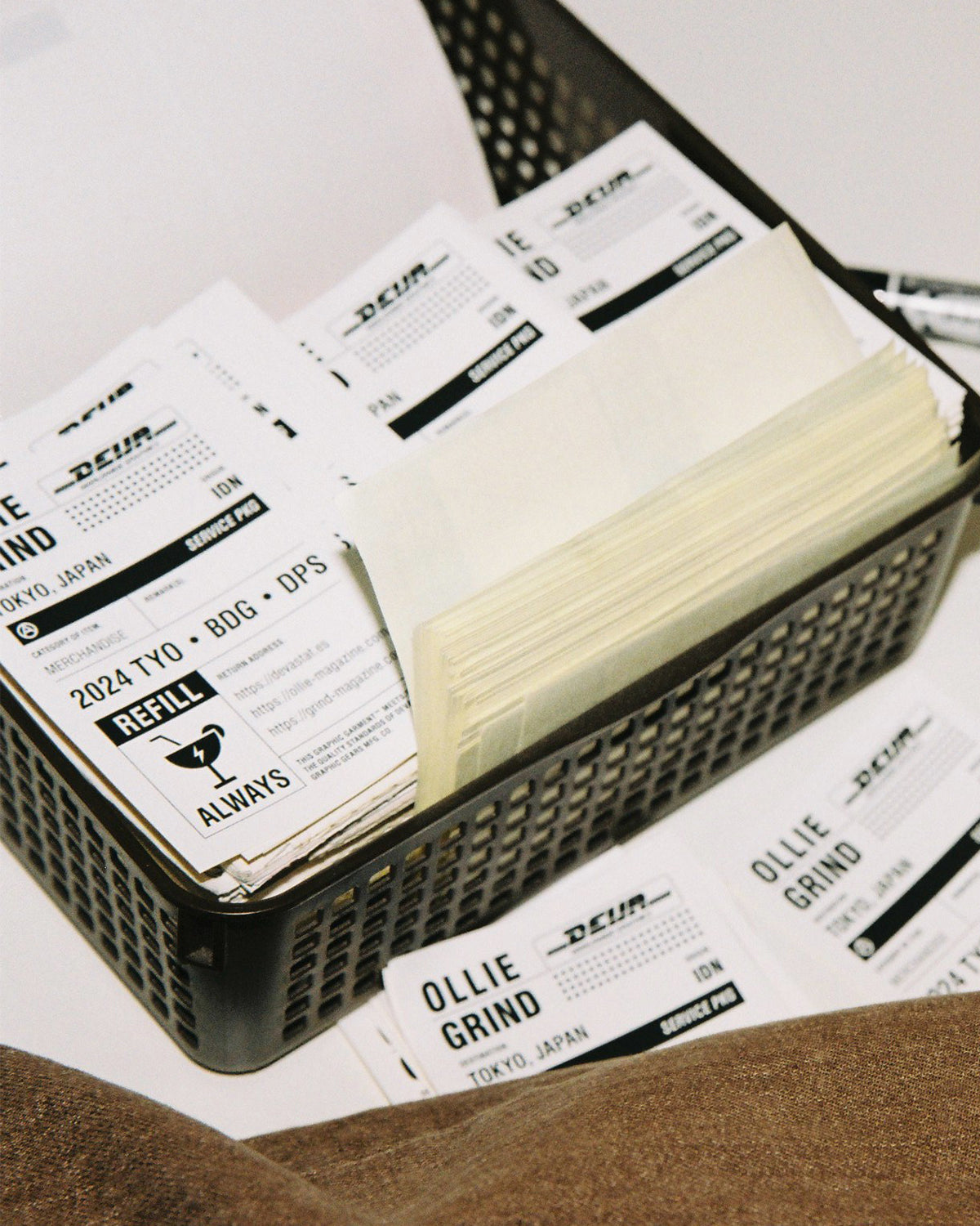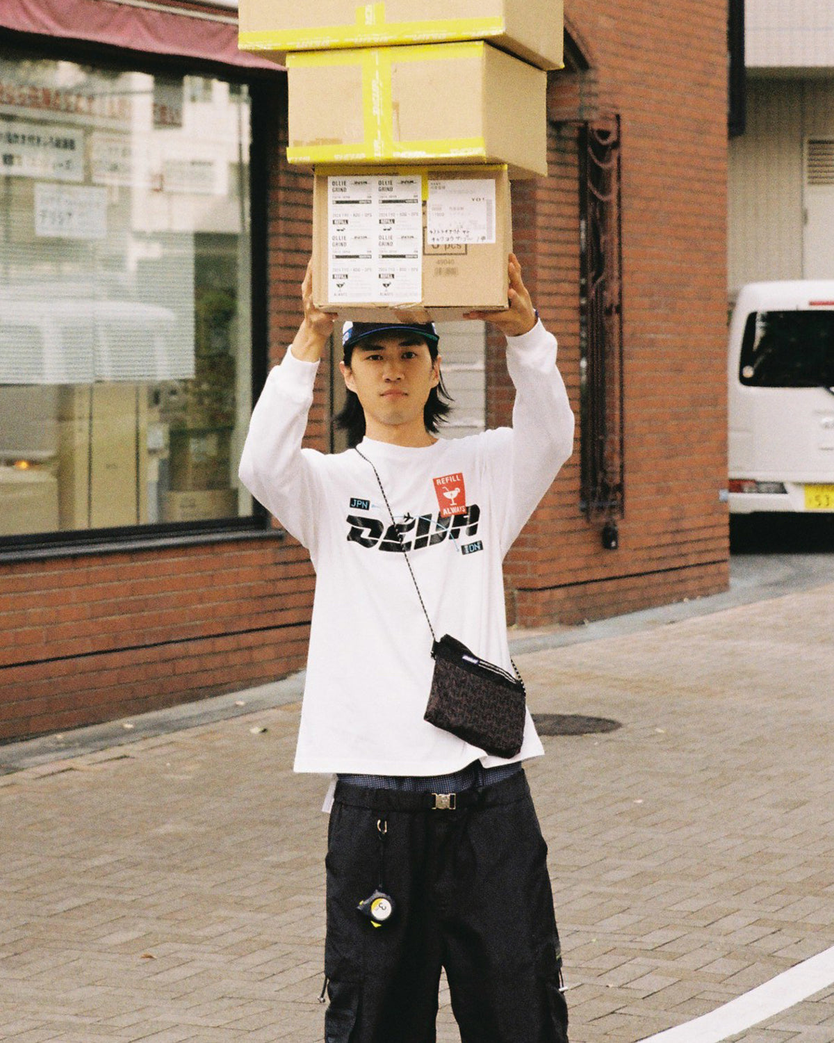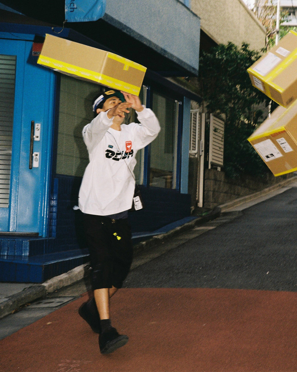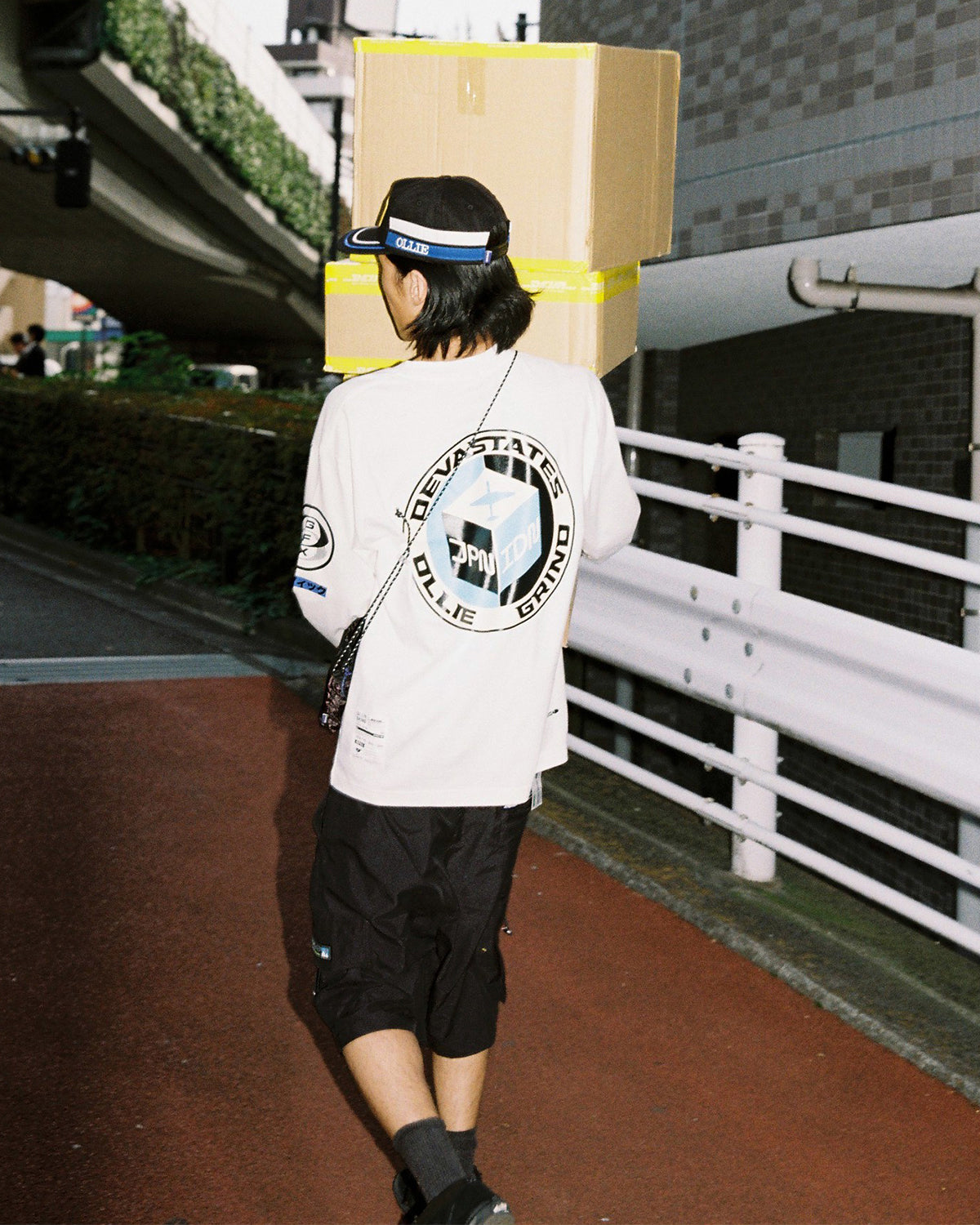Introducing the Ollie Magazine collaboration with DEVÁ STATES - Called “Bon Voyage”, the collaboration centers on a journey from Tokyo to Bali. All the campaign visuals are inspired from Japanese shipping companies. The collaboration items are essential items for on trips—whether for a night out in Tokyo or relaxing by the beach in Bali, expressing the cultural transportation between Japan and Indonesia. Graphics and patterns for the collaboration also highlight traditional Balinese elements.