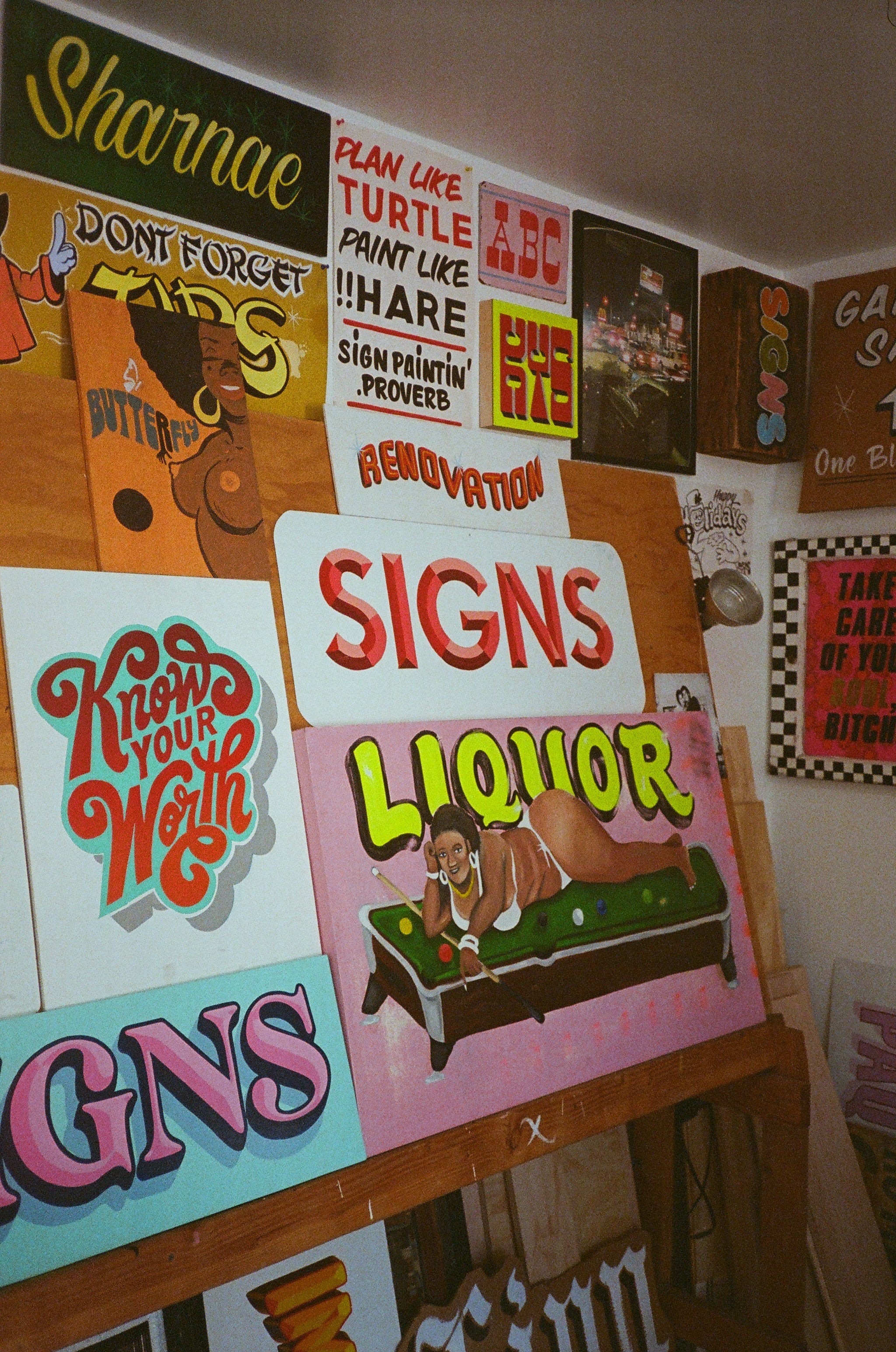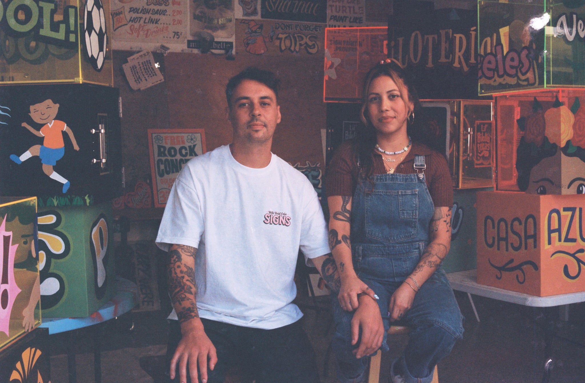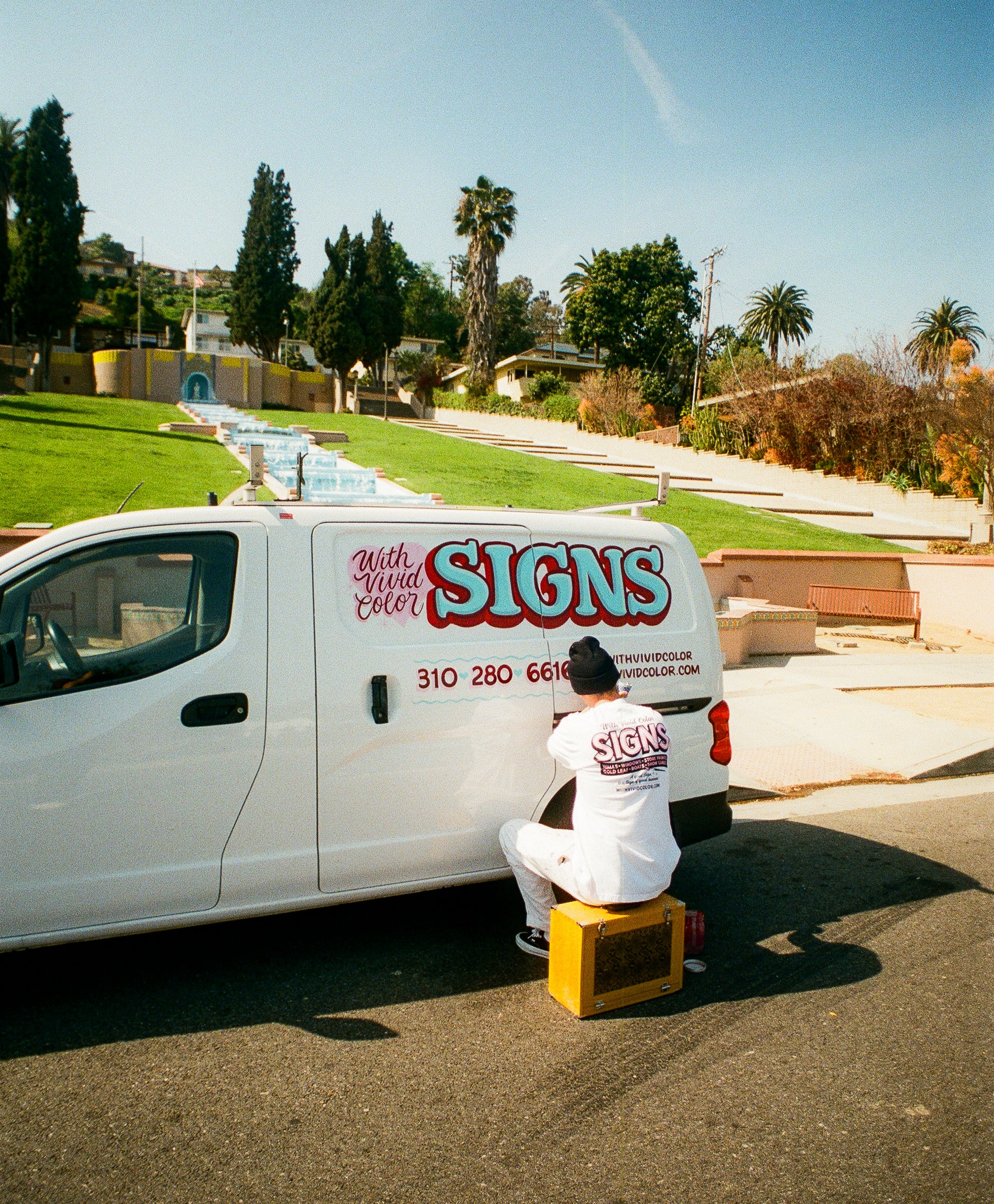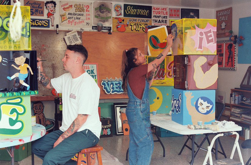 Based in Los Angeles California, With Vivid Color is a multi racial family business started by Julien Bleser and Sharnae Caceres. Specializing in hand painted signs, graphics and murals. Their work can be seen all over Los Angeles, as well as other major cities, such as Las Vegas, Phoenix, San Francisco, and many more. Their ability to adapt to any type of medium is what sets them apart from other sign companies/artists. They take pride in their ability to meet their clients' needs and make their vision come true. High gloss or flat, long-lasting, or temporary, these vibrant signs are sure to draw people in. Some of their clients include Vans, Supreme, Undefeated, Golf, FTP, Sari Sari Store, Bella Dona, Born x Raised, Wacko Maria and many more.