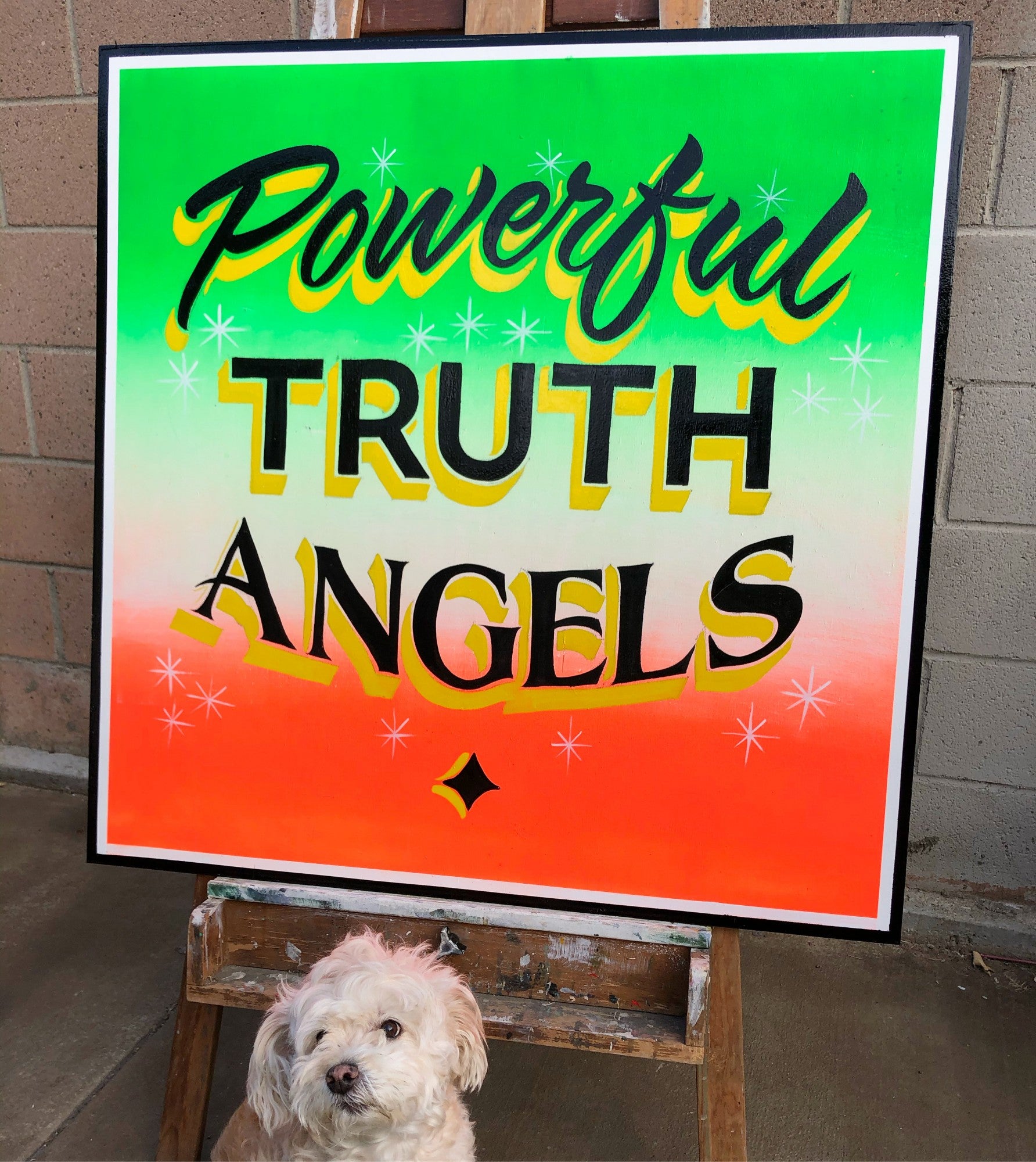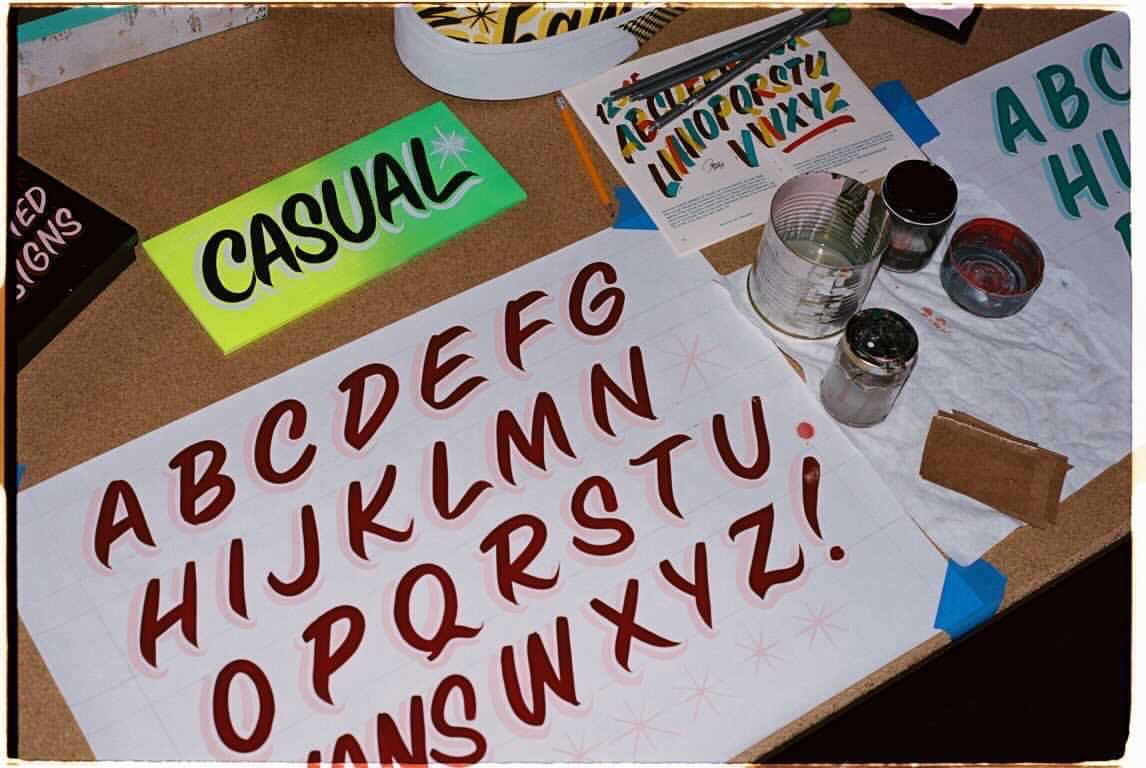 With Vivid Color is the house that Sharnae & Julien Blesser built through their shared creativity and love of sign painting. Ever since Juliens early years studying at Los Angeles Trade Tech College, Julien has always had the ability to convert ideas into action instantaneously. In addition, Sharnae attending has always been as stylish as ever with her 70's funk aesthetic spun through the visual kaleidoscope of East LA. The name With Vivid Color describes their shared vision - Sharnae channeling ribbons of color and tone, and Julien applying his personal touch with a pencil and a paint brush. Their cooperation leads to a product that is organic, unfiltered, and truly unique. With Vivid Color can be described as the outlet for Sharnae & Juliens natural gifts as old school artists in the postmodern world.
